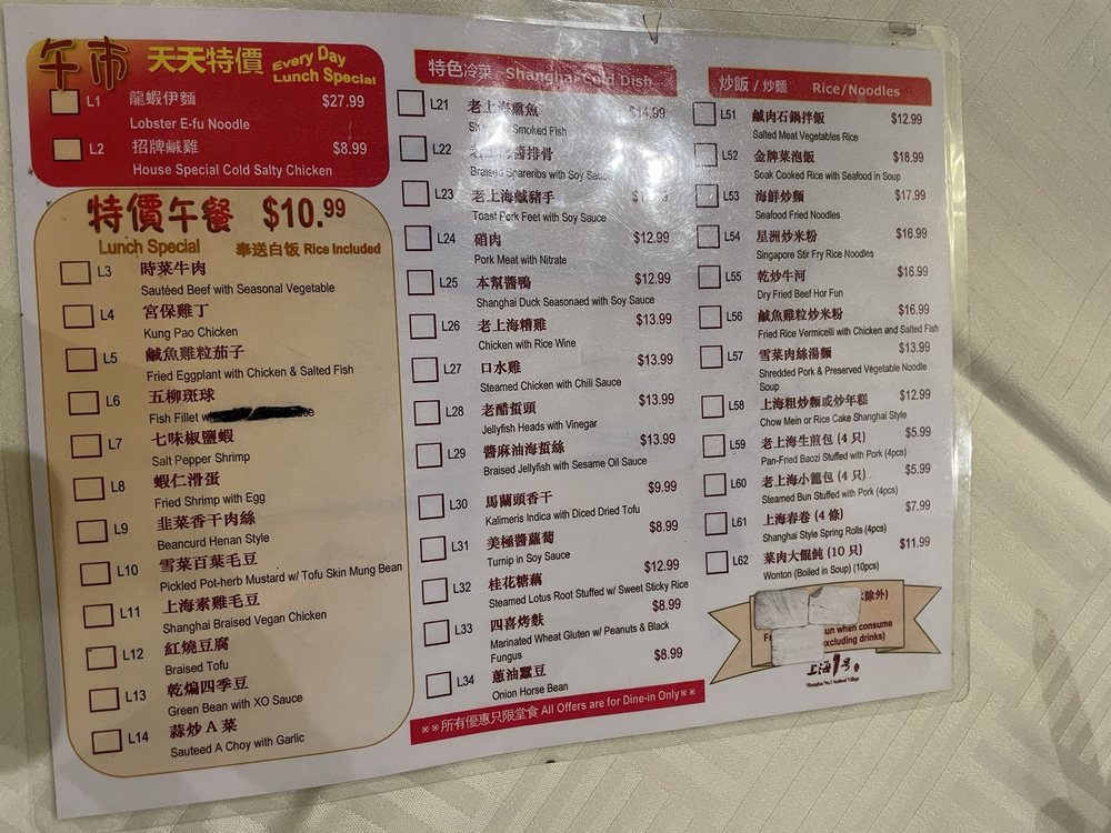 Shanghai No.1 Seafood Menu (Update 2025)